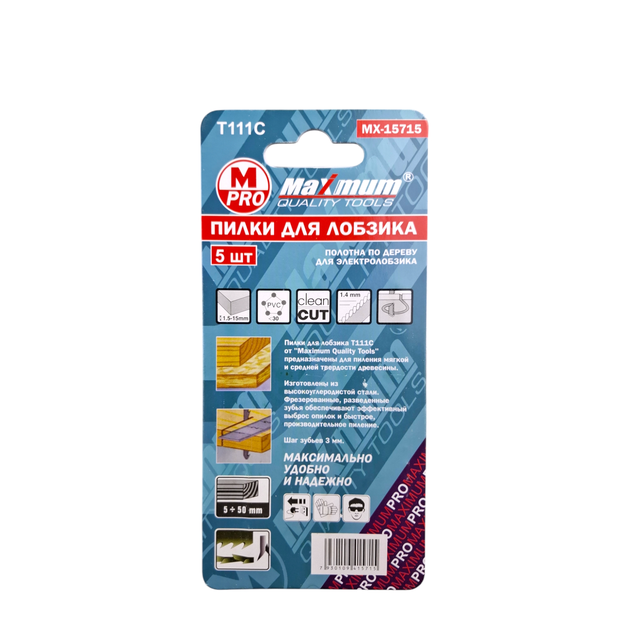Пилки для лобзика по дереву, Т111С, 5 предметов, "MAXIMUM" MX 15715